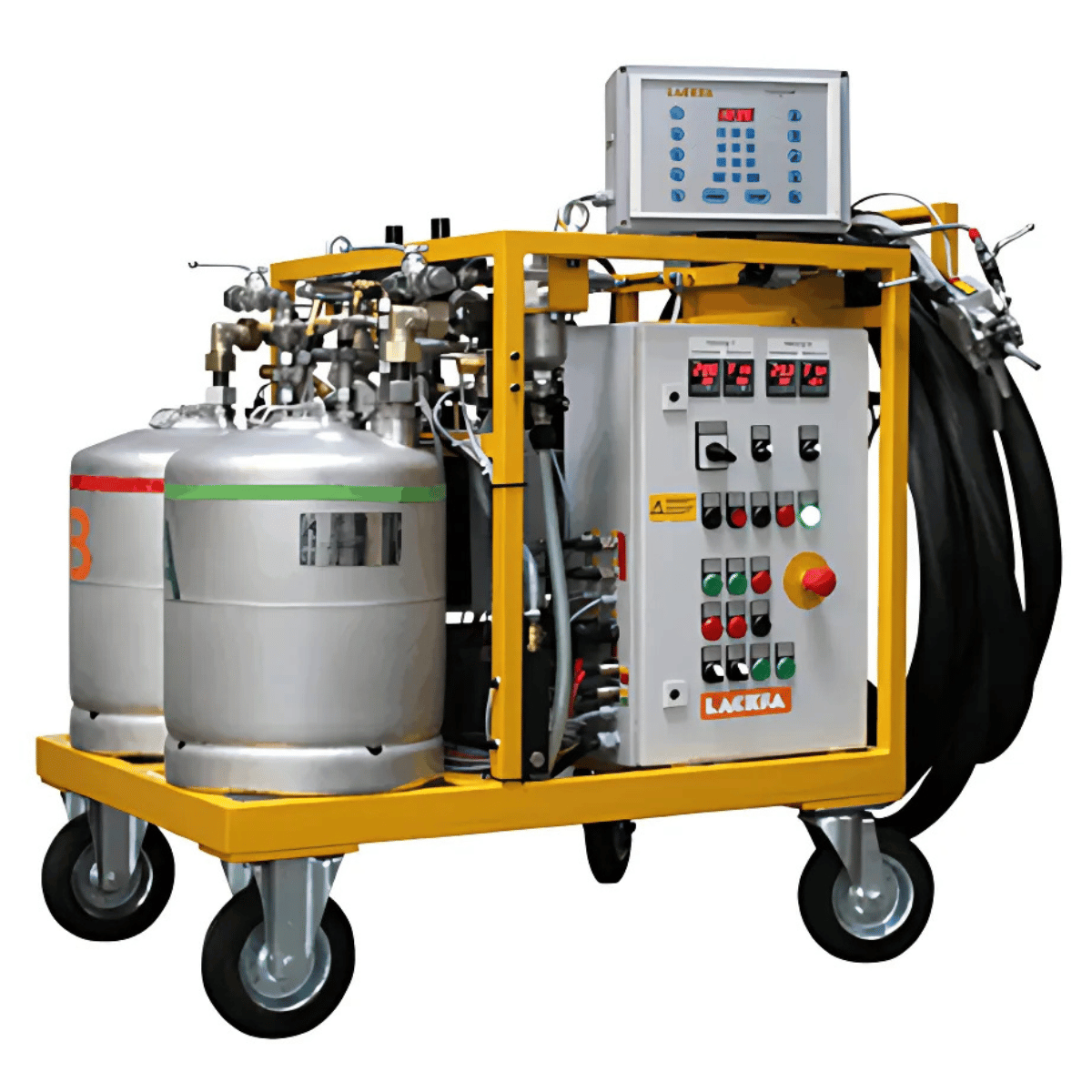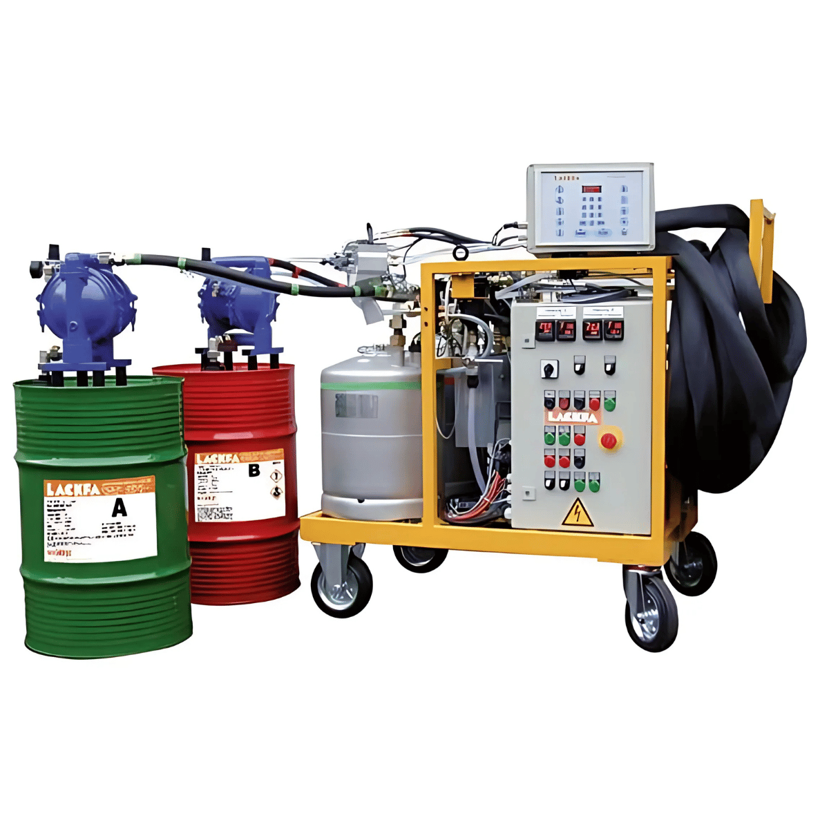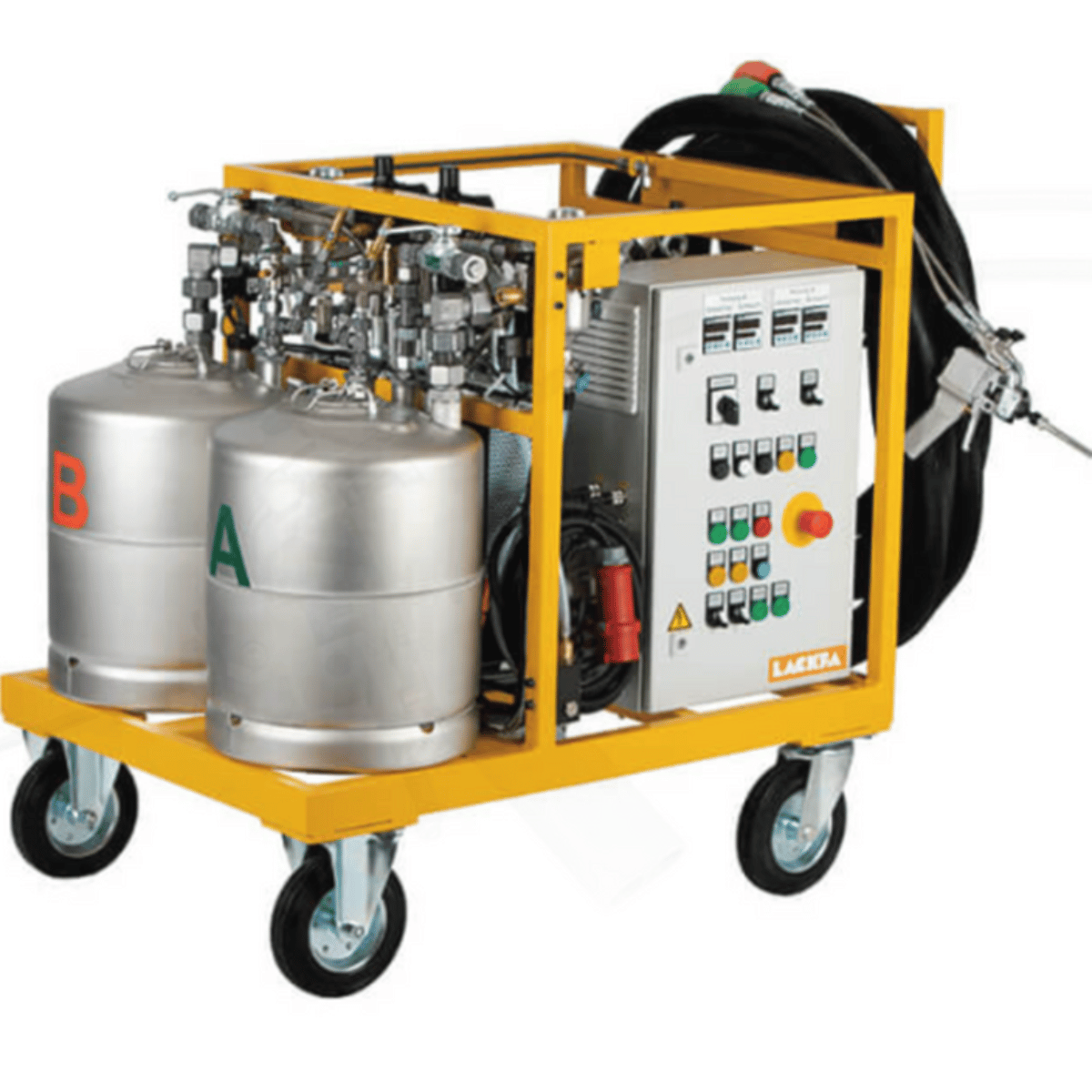 Je nach gewünschter Austragsleistung und Verarbeitungsbedingungen können unsere LACKFA-Kunden zur Verarbeitung von PU-Systemen zwischen einer Mitteldruck- oder einer Hochdruckanlage mit einer Behältergröße von 40l pro Komponente wählen.